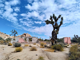 I attended the meeting, talking a little to explain the exciting new direction the AiR program is headed at Joshua Tree with the addition of an educational outreach component that I am piloting. I very much appreciate having been asked to be a part of the transition this year. After the meeting I drove into the park, stopping near Barker Dam to take the trail to the Wall Street Mill site. It's a nice hike, though much of it is on loose sand through washes so a little slower than usual. At the mill site are some great ruins, and a couple others staggered along the way, another car and some building ruins.